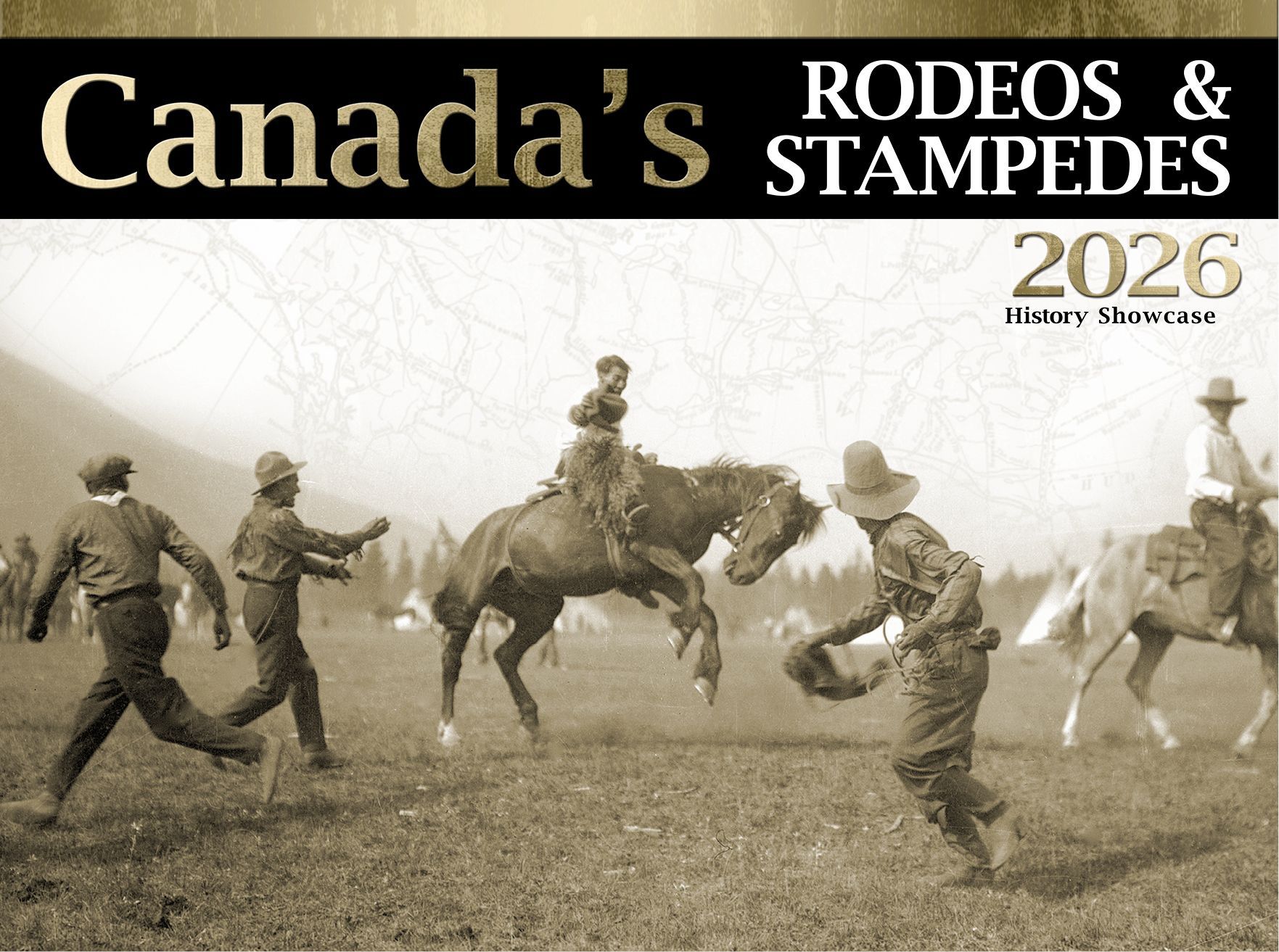 Topics include petroleum and oilsands pioneering, especially momentous events such as first oil strikes, blown and gushing wells, and new technologies. Other topics include agriculture, ranches and rodeos, early road building, and the 1912 first Calgary Stampede. Many within each series are available with short historical write ups and several photos in the same framed showcase.